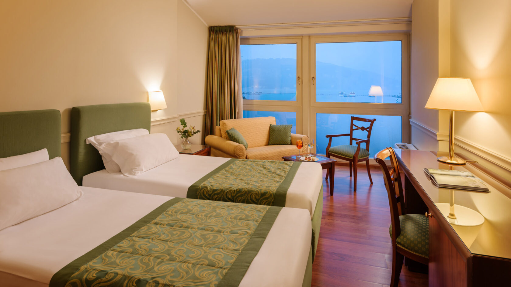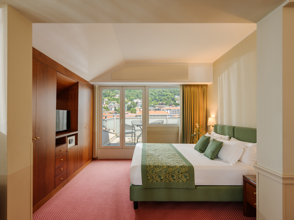 Overlooking the central Piazza Cavour, most of the rooms at Hotel Excelsior Barchetta offer views of Lake Como. Most also have a private balcony for a leisurely breakfast while admiring the scenery. Each room has all the essential amenities for a relaxing stay.